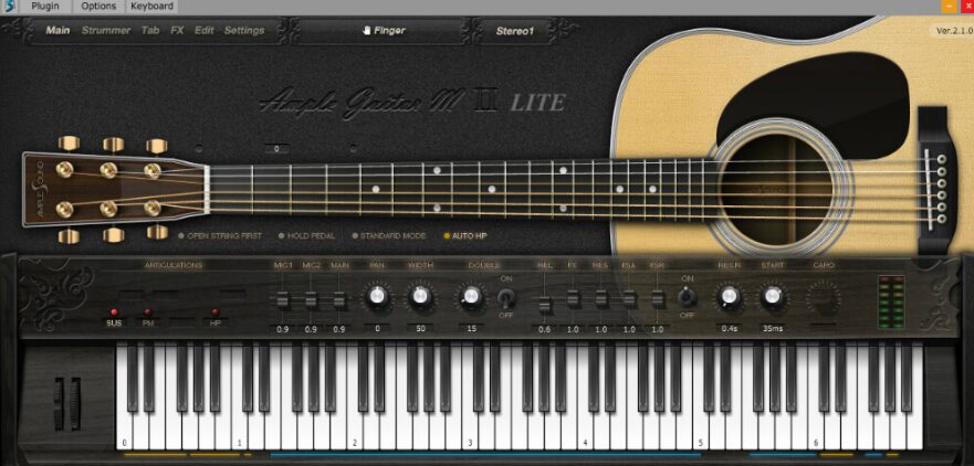 アーティキュレーションはキーにアサインされているため、MIDI キーボードを使用してギターの奏法を表現することが可能です。