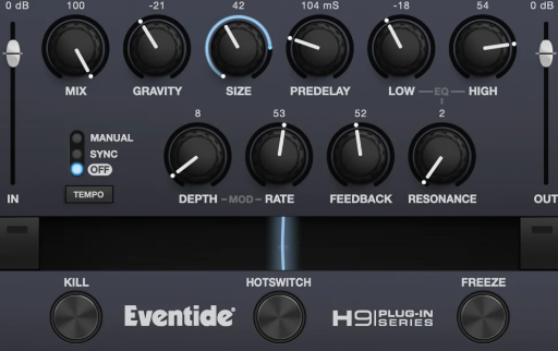 「Gravity」コントロールは、リバーブの減衰を反転させ、音が膨らんでいくような不思議な効果を生み出します。「Kill Switch」を使えば、入力音をミュートしてリバーブのサウンドだけを聞くことができ、オートメーションと組み合わせることも可能。
