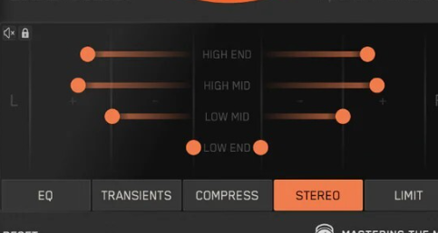 低域から高域まで、4つの周波数帯で楽曲のステレオ幅を調整することが可能です。
