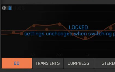 気に入ったモジュールの設定を固定し、他のプリセットを試す際にもその設定を維持できます。例えば、完璧なステレオ設定が見つかったら、それをロックしたままEQ設定だけを色々と試すといった使い方ができます。