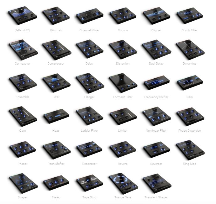 このコレクションには、3-Band EQ、Compressor、Delay、Reverbといったミックスに不可欠な基本的なツールはもちろんのこと、Bitcrush、Formant Filter、Tape Stop、Ring Modといった独創的なサウンドデザインを可能にするエフェクトまで、幅広いラインナップが含まれています。