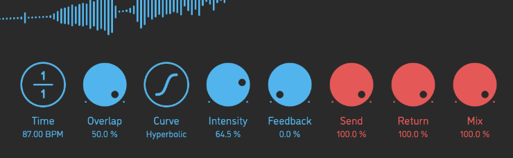 ノブが色分けされているため、直感的に操作できます。また、すべてのパラメーターにラグフィルターが搭載されているため、ノブを動かした際のクリックノイズが発生しにくい設計となっています。
