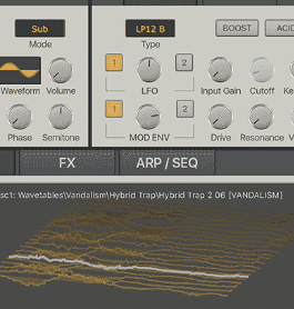 これにより、音を厚く重ねた非常に強力な「Supersaw」などのサウンドを簡単に作り出すことができます。また、独自のウェーブテーブルを読み込む機能も備わっており、無限に近い音色のバリエーションを生み出せます。