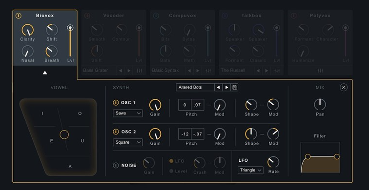 VocalSynth 2の目玉の一つが、新機能「Biovox」です。